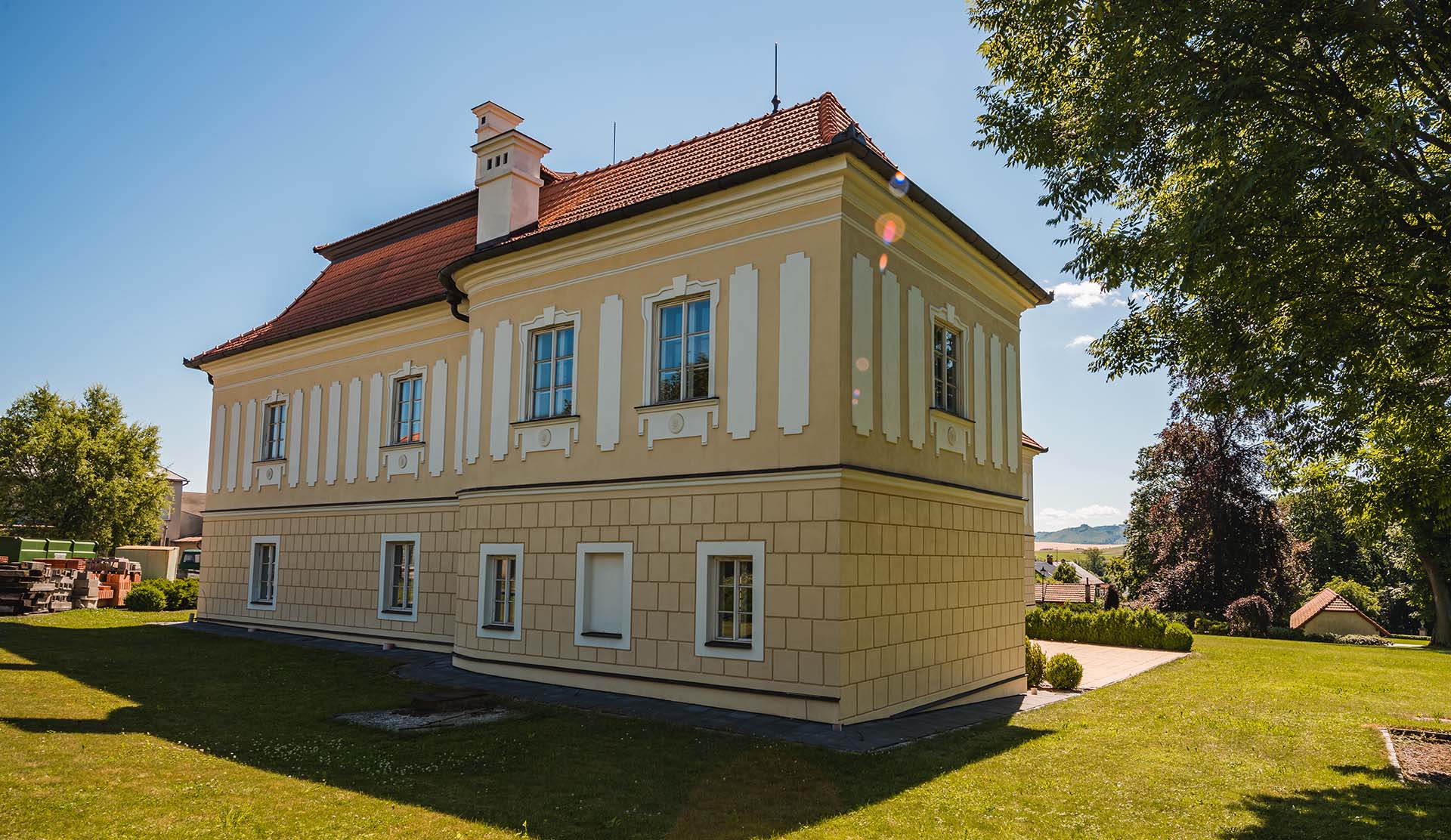 After the events of 1989, the restitution proceedings and several property changes, the chateau was acquired by its current owner Jaroslav Mikl. In the years following 2006 he undertook an extensive reconstruction of the chateau and the adjacent park and had a so-called „Project for the Preservation of a Cultural Monument“ drawn up. Between 2009 and 2019 the roof was reconstructed, the chateau cellar was remediated, and brick walls with a brick bastion were built. Windows have been replaced and the plaster work in all the rooms in the chateau stripped down. The facade of the left wing was newly repaired as were the other sides with additional building elements such as decorative cornices or rosettes. The Empire style balcony, with sandstone railings and supported by prismatic columns, was rebuilt. All the ceiling stucco decorations were also expertly reconstructed, and the chateau chapel will once again have its place in the chateau. Guided tours of the castle are held regularly there. It is also worth mentioning a remarkable Renaissance well which has already been completely restored. After expert restoration, a monument to Euphemia Želecká was placed in the western part of the park not far from the pool, which is enclosed with decorative ironwork. The surroundings of the pool and the paths in the park are lined with period lamps and benches and the ubiquitous greenery adds pleasantly to the overall impression. Professional treatment of the trees was carried out and new greenery has been planted. A special feature are the beds of rhododendrons and fine examples of solitaire trees and shrubs.